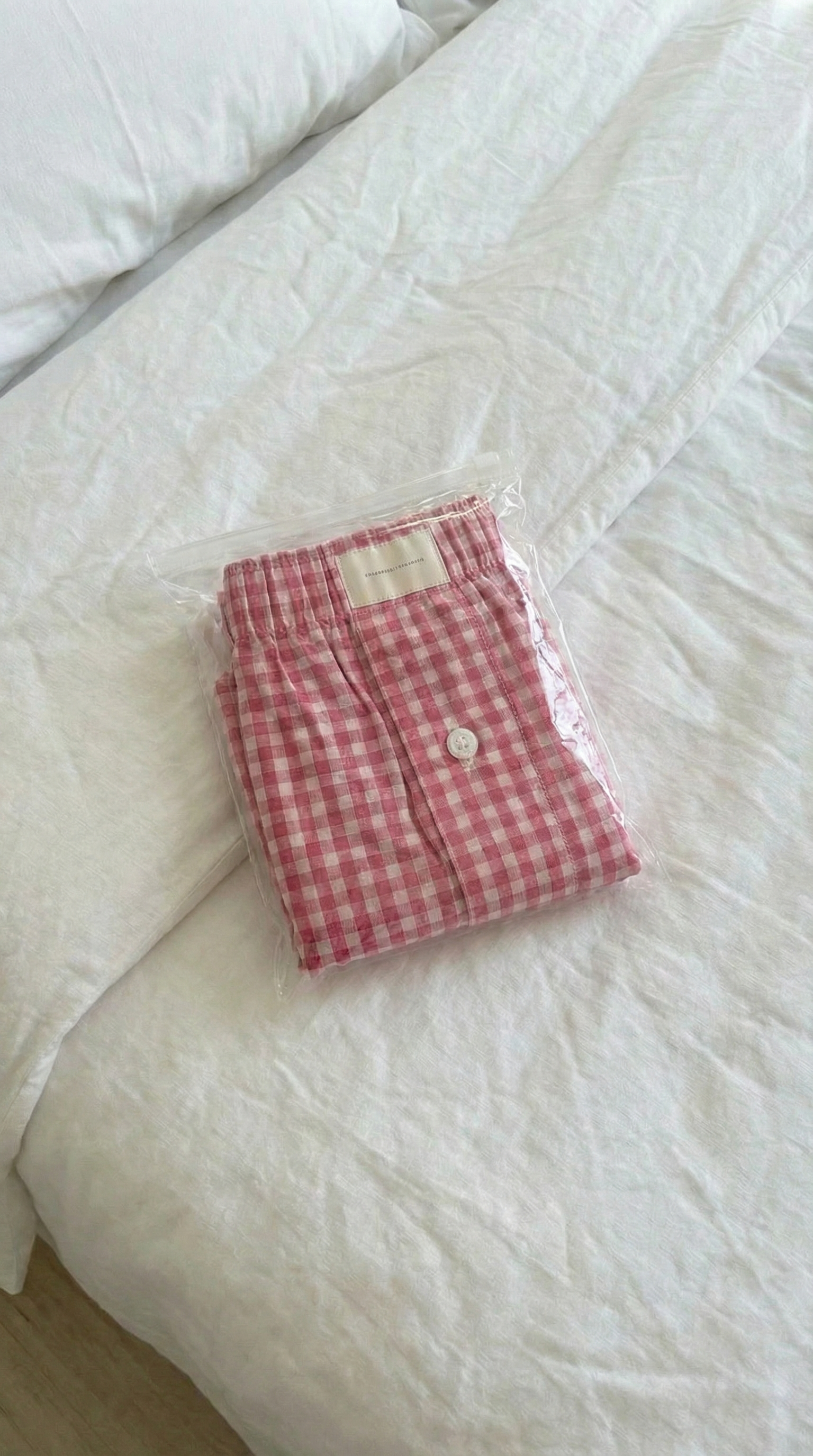 • Pink and white micro gingham check pattern