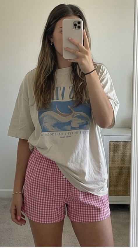 Rose Plaid Woven Shorts